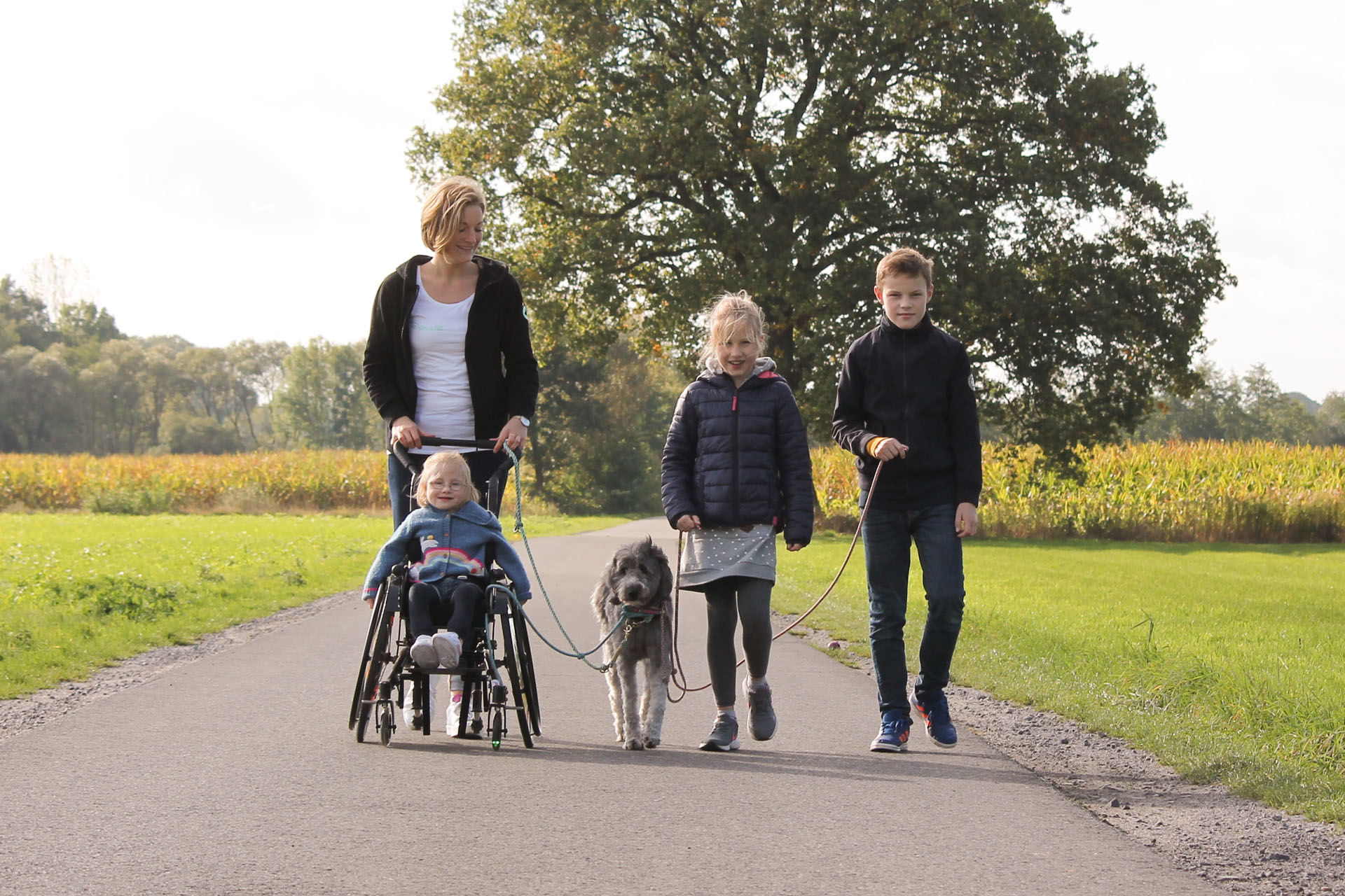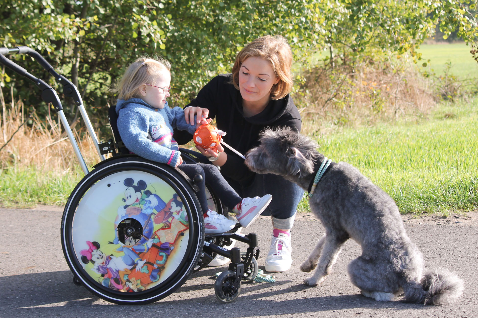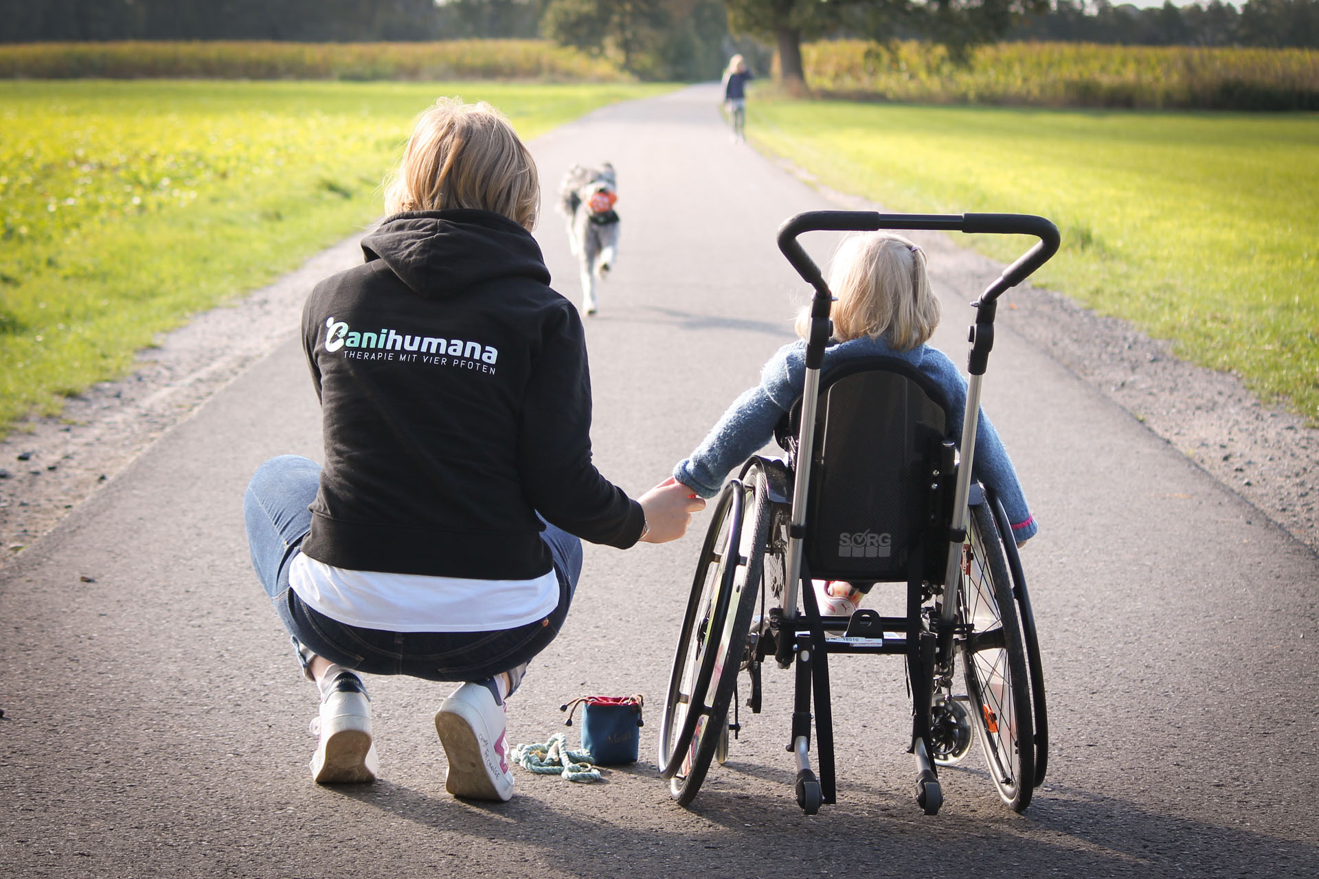 Abgeschlossen haben wir die Ausbildung im Juni 2020 nach schriftlicher Prüfung des theoretischen Wissens und einer praktischen Prüfung, in der zwei Therapieeinheiten und ein 15-minütiger Spaziergang am Rollstuhl live bewertet wurden. Nachdem wir anschließend vom Veterinäramt der Stadt Münster eingehend geprüft wurden, erhielt ich im Herbst 2020 die offizielle Erlaubnis, meinen Hund gewerblich einzusetzen (§11 Tierschutzgesetz). Nun steht uns also nichts mehr im Wege.